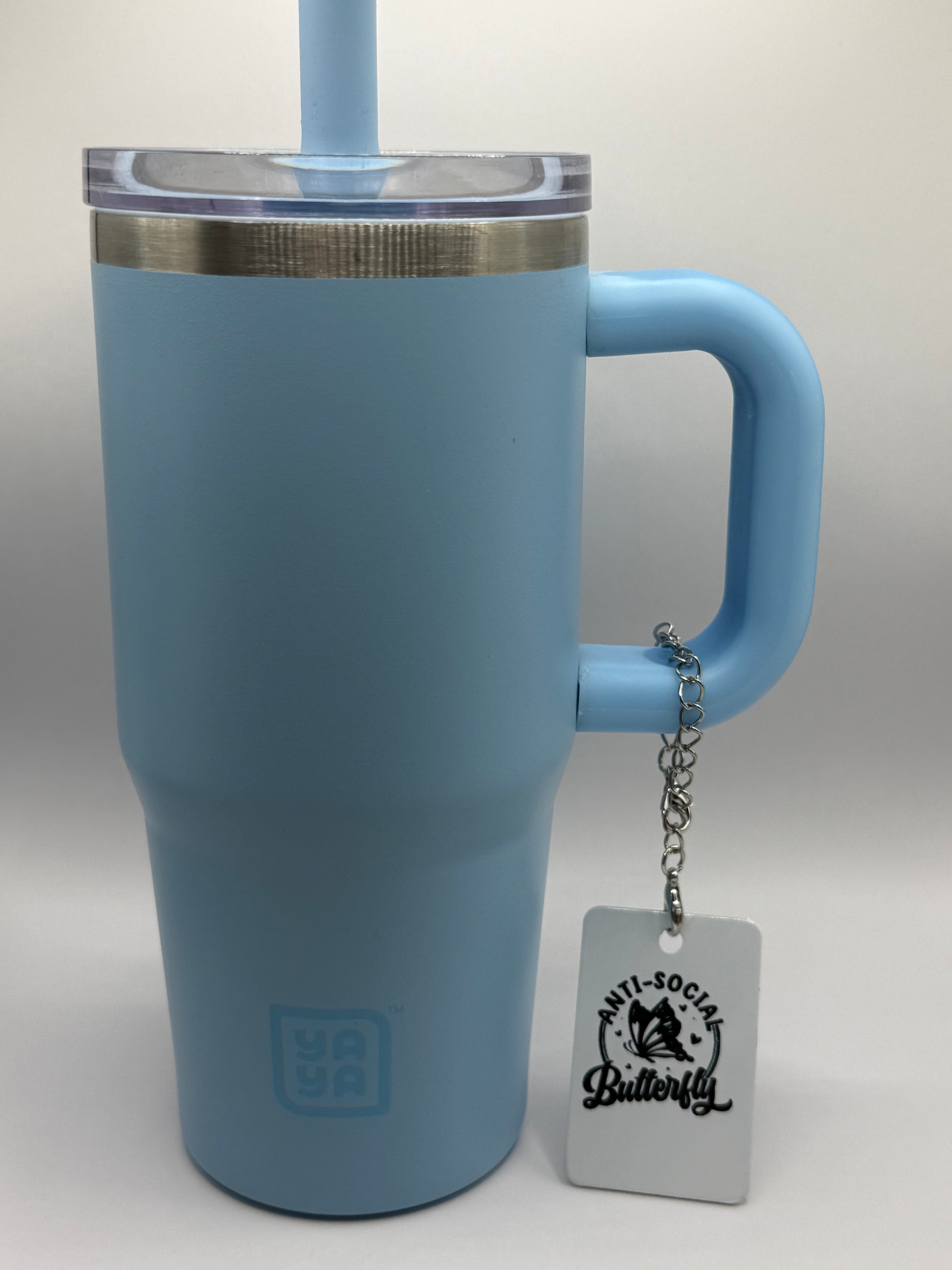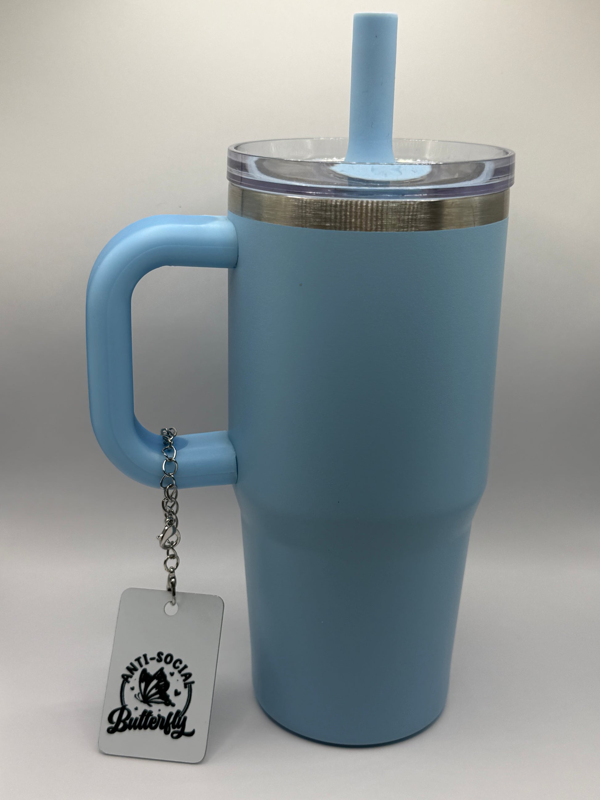 Embrace your introverted spirit with this charming butterfly design—perfect for personalizing your tumbler or bag with a touch of witty humor. A delightful accessory for those who prefer their own company and a good laugh. Pictured on a child's 6" tumbler. Charm will dangle on a full-sized tumbler.