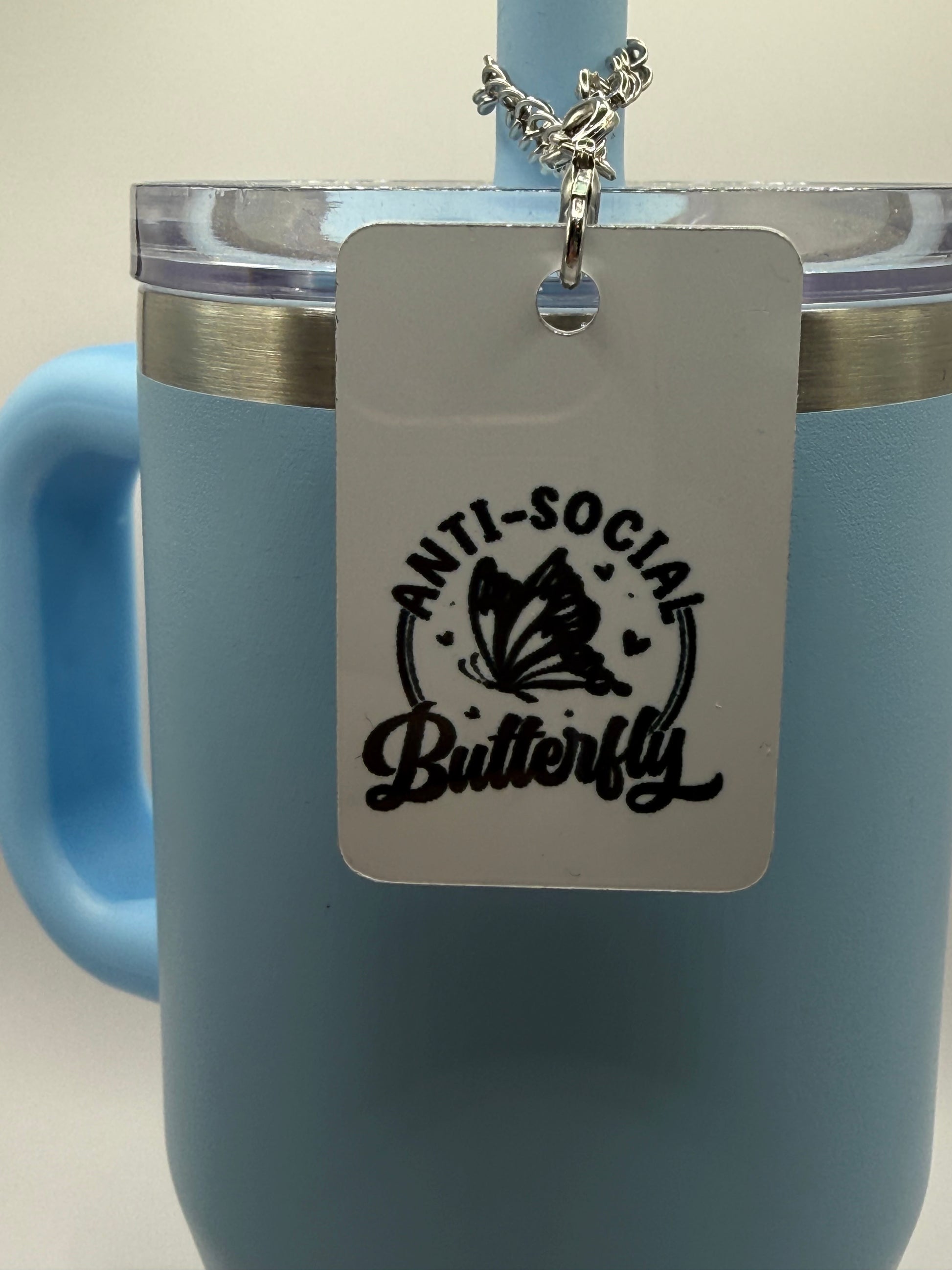 Rectangle charm for tumbler or bag - Antisocial butterfly